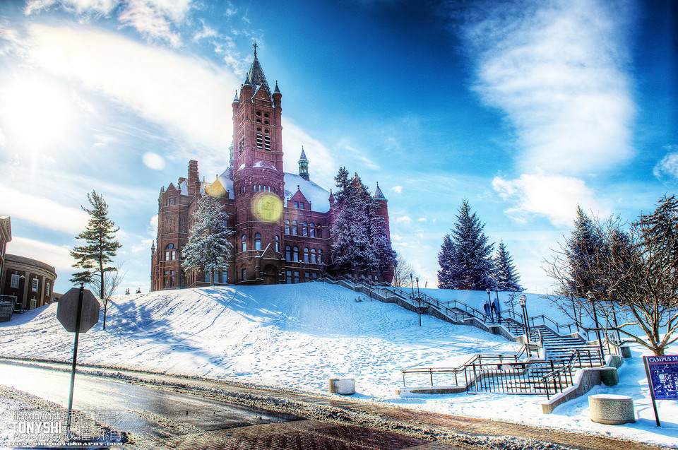雪城大學Syracuse University是美國一所私立綜合性研究型一流大學,是美國國家一級研究型大學,該校成立于1870年,位于美國紐約州中部的錫拉丘茲,素有CENTRAL NEW YORK之稱,治安良好,環(huán)境優(yōu)美,湖光山色,是十分美麗的都市。屬于大陸型氣候,四季分明,"逢春飄花,臨夏蔭濃,城秋楓紅,瑞雪隆冬"是最佳寫照。因受湖區(qū)氣候效應的影響,錫拉丘茲在美國以降雪量豐富著稱,因此Syracuse University又被美國人親切地稱為雪城大學,這便是" 雪城大學" 名稱的由來。