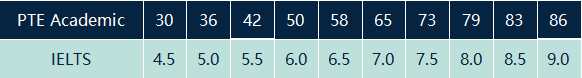 六、PTE分?jǐn)?shù)對(duì)照表: