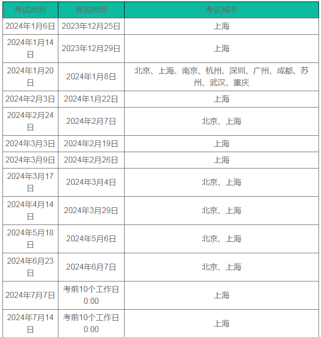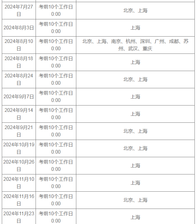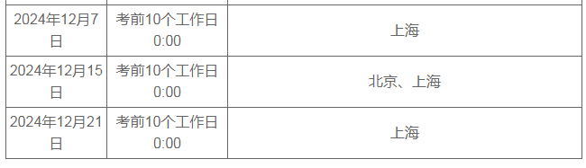 報(bào)名截止時(shí)間: 考前10個工作日0點(diǎn)