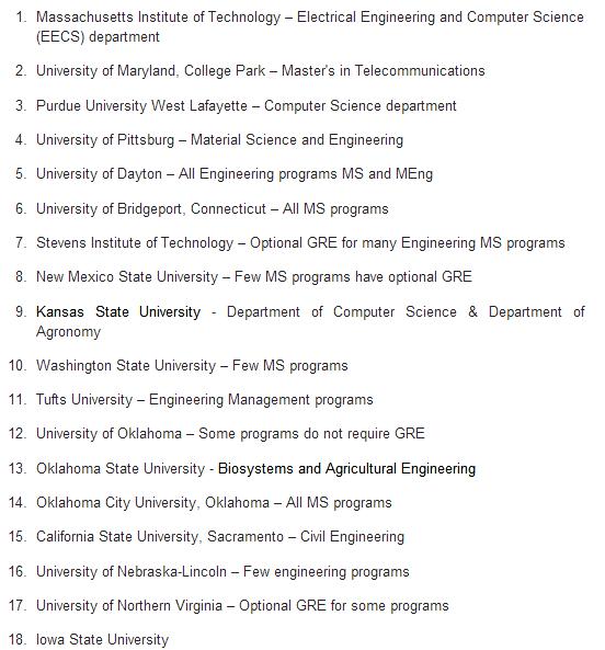 下面是在某種條件下(比如本科成績(jī)非常突出的情況)可以豁免GRE的學(xué)校。