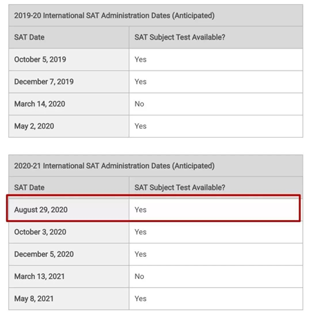 大學(xué)理事會(huì)增加亞太地區(qū)2020年8月SAT考試