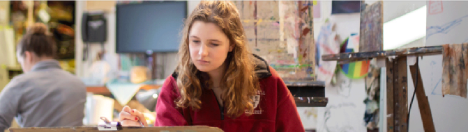超過30個工作室藝術(shù)課程,從繪畫和版畫的基礎(chǔ)課程到繪畫和時裝設(shè)計的工作室經(jīng)驗。許多學生首先探索廣泛的二維和三維藝術(shù)形式,然后專注于,例如,紀錄片制作或陶藝。除了工作室指導(dǎo),大多數(shù)視覺藝術(shù)課程包括講座或放映,小組討論和評論。第一級課程作為一個循序漸進的挑戰(zhàn)性課程序列的介紹,如攝影,建筑,數(shù)字平面設(shè)計,纖維藝術(shù),雕塑,劇本寫作,藝術(shù)史和電影史。