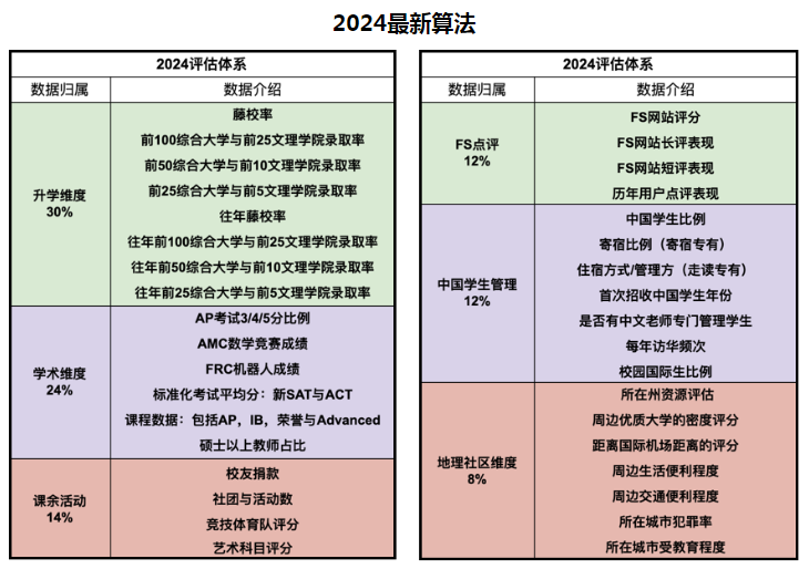 1.【30%-升學(xué)維度】:常春藤盟校錄取率、前25綜合大學(xué)+前5文理學(xué)院錄取率、前50綜合大學(xué)+前10文理學(xué)院錄取率、前100綜合大學(xué)+前25文理學(xué)院大學(xué)錄取率、歷年升學(xué)數(shù)據(jù)匯總等;