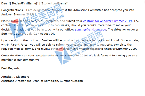 恭喜留學美國網Z同學,在不到2周的時間里,拿到了菲利普斯安多佛中學Phillips Academy Andover夏校offer。