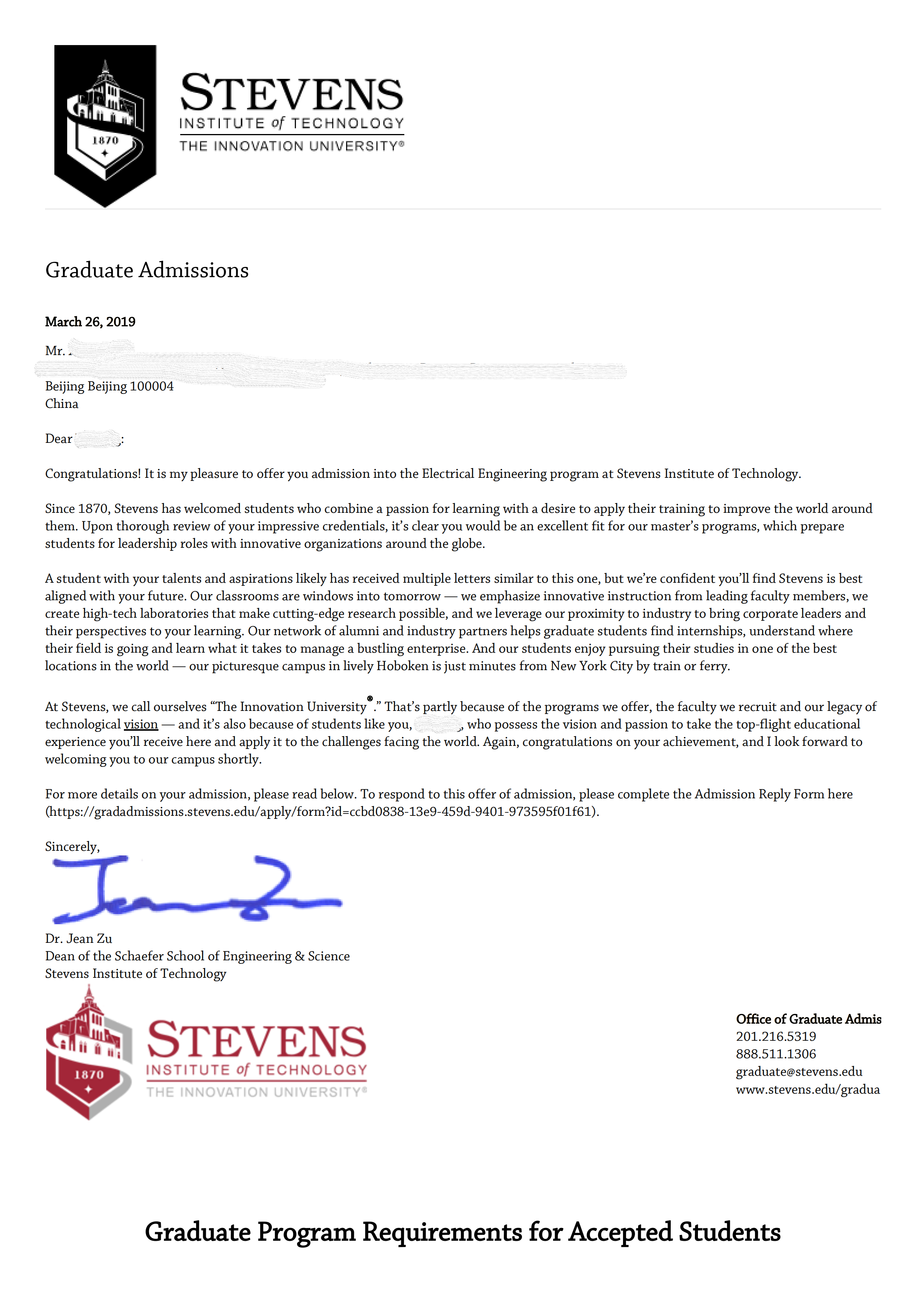 恭喜留學美國網(wǎng)H同學成功獲取史蒂文森理工學院錄取offer Stevens Institute of Technology