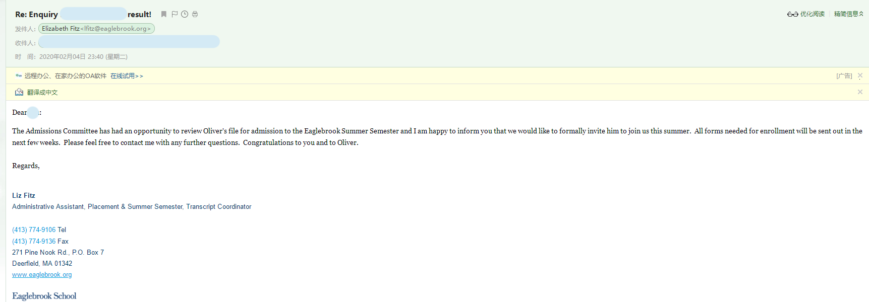- 恭喜留美網(wǎng)Y同學(xué)收獲福利斯特里奇中學(xué)錄取