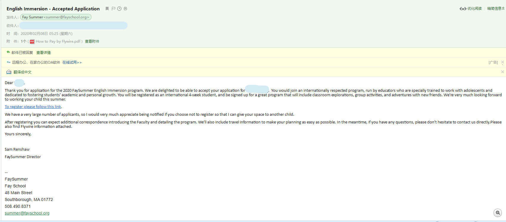 - 恭喜留美網(wǎng)Y同學(xué)收獲西北中學(xué)錄取offe