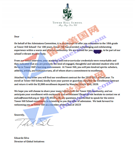 - 恭喜留美網(wǎng)Y同學(xué)收獲西北中學(xué)錄取offe