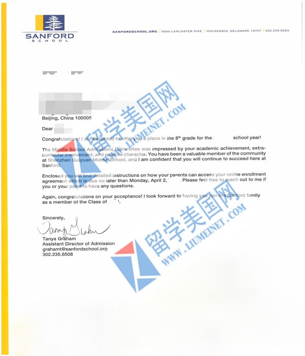 - 恭喜留美網(wǎng)Y同學(xué)收獲西北中學(xué)錄取offe