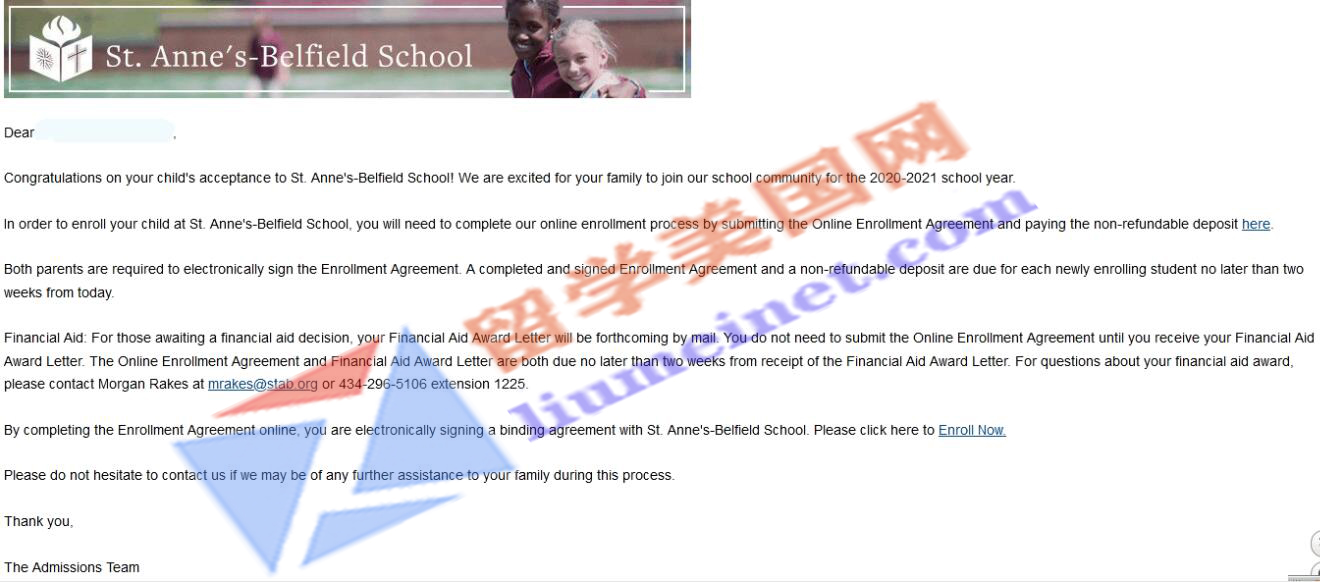 大家好!錄取捷報(bào)!在石老師帶領(lǐng)下,經(jīng)過(guò)留美網(wǎng)團(tuán)隊(duì)的共同努力,在學(xué)校沒(méi)有名額的情況下幫Z同學(xué)爭(zhēng)取到面試,最終成功幫助Z同學(xué)申請(qǐng)到圣安妮貝爾菲爾德學(xué)校(St.Anne's-Belfield School)的錄取,恭喜留美網(wǎng)Z同學(xué)!請(qǐng)見(jiàn)錄取offer展示!每一個(gè)Offer的背后都凝聚了留美網(wǎng)所有同事的共同努力,再次祝賀D同學(xué)!希望他在美國(guó)學(xué)業(yè)有成!同時(shí)感謝家長(zhǎng)的配合和信任~