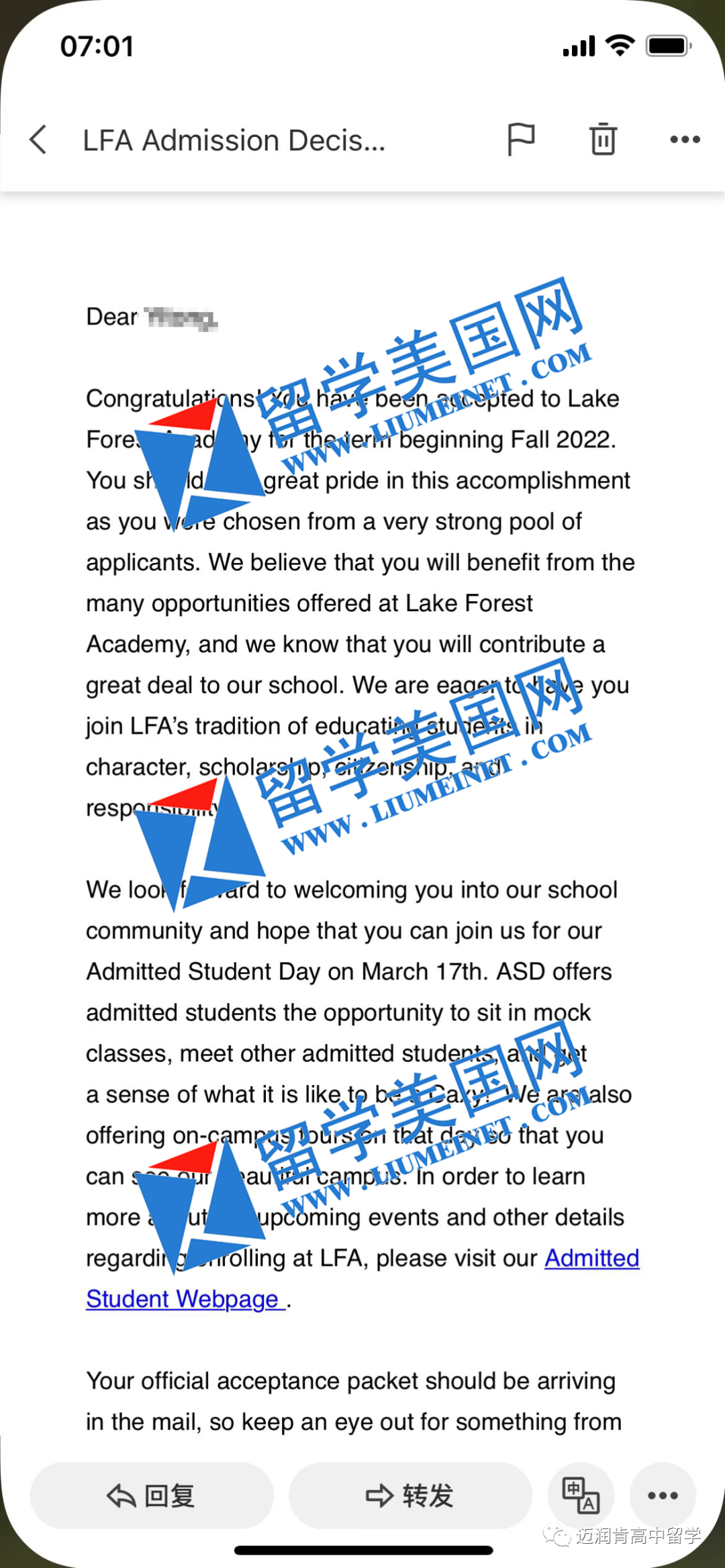 錄取捷報(bào)-湖森中學(xué) Lake Forest Academy