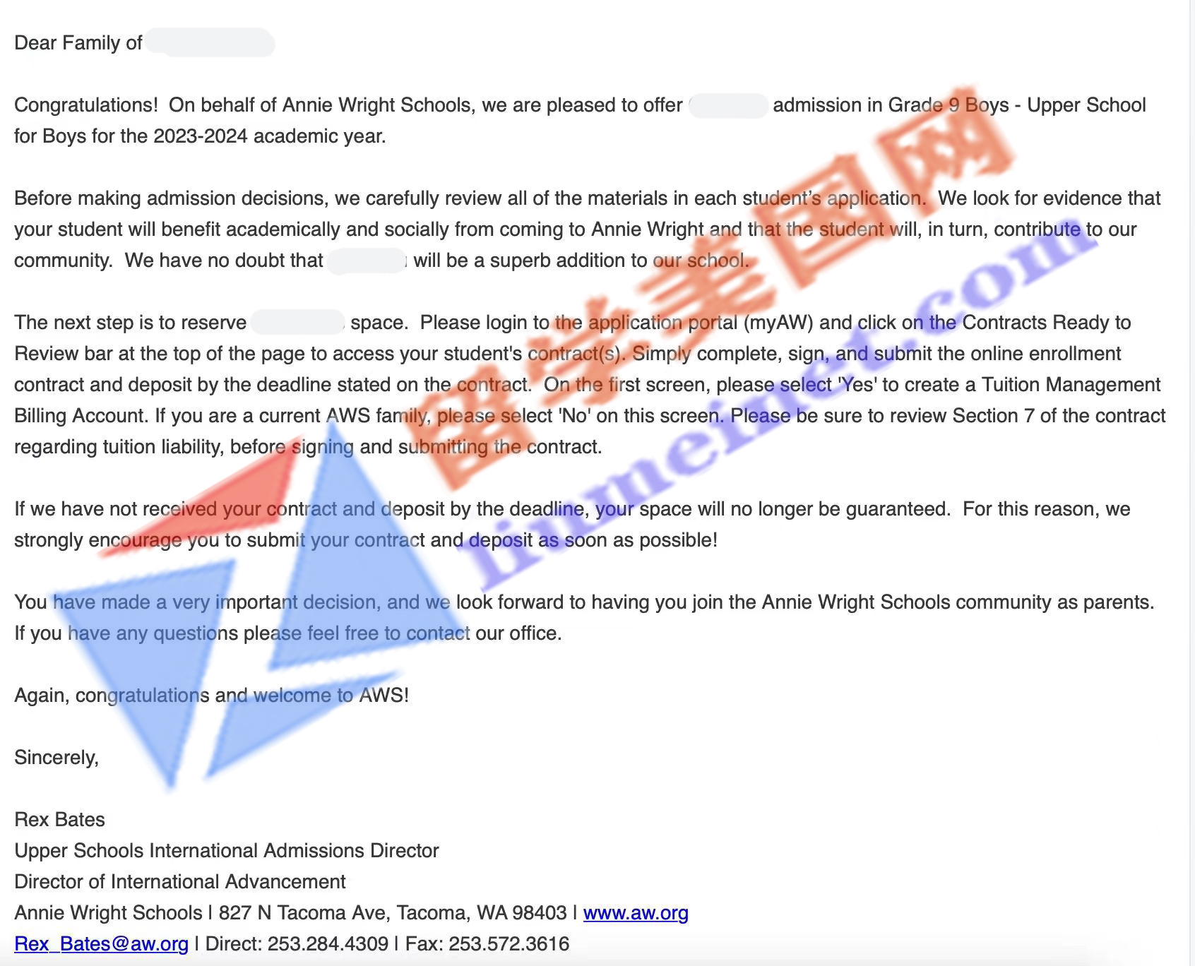 錄取喜報~恭喜留美網(wǎng)Z同學(xué)斬獲安妮懷特學(xué)校Annie Wright Schools錄取~