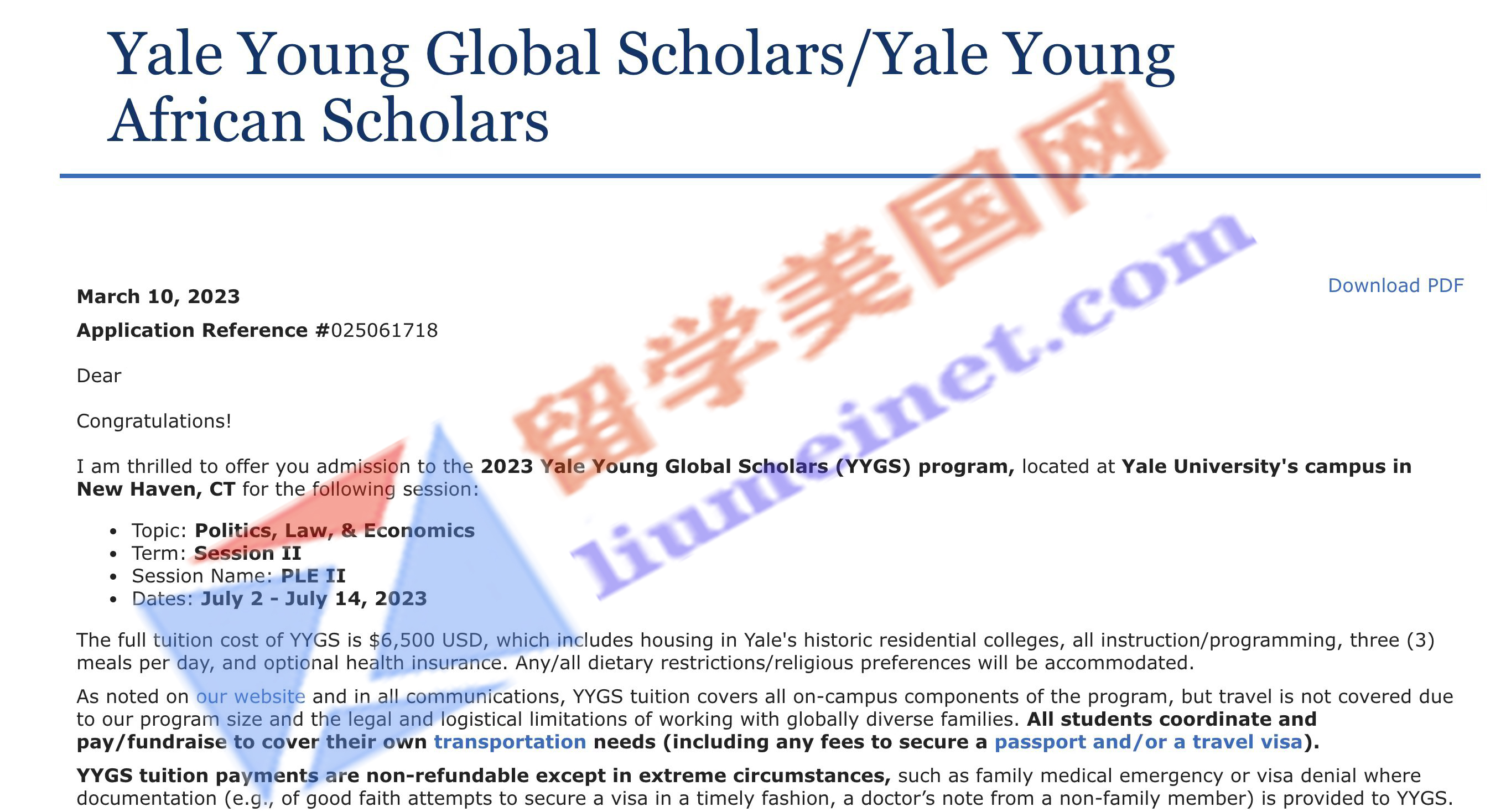 錄取學(xué)校:耶魯全球青年學(xué)者項目夏校