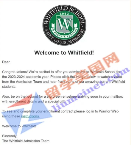 錄取學(xué)校:惠特菲爾德學(xué)校Whitfield School