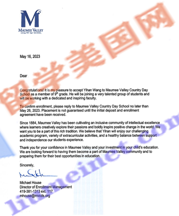 留美網(wǎng)喜報頻傳:恭喜留美網(wǎng)W同學(xué)斬獲莫米谷中學(xué)Maumee Valley Country Day School的錄取offer!