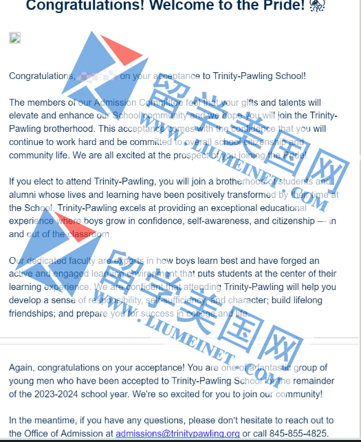 - 恭喜留美網(wǎng)Y同學(xué)收獲福利斯特里奇中學(xué)錄取