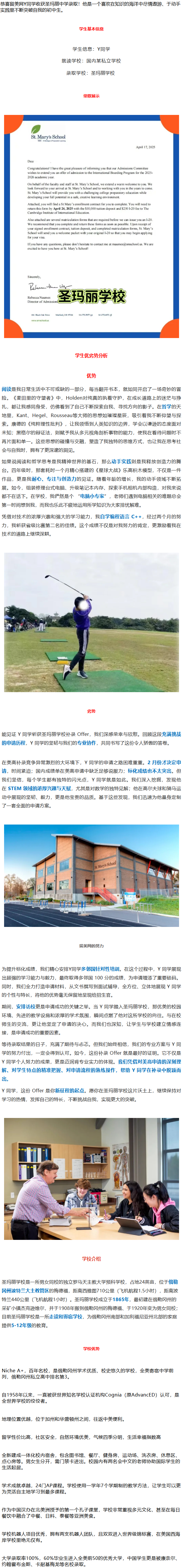 【錄取喜報(bào)】恭喜留美網(wǎng)學(xué)子Y同學(xué)斬獲圣瑪麗學(xué)校 錄取offer