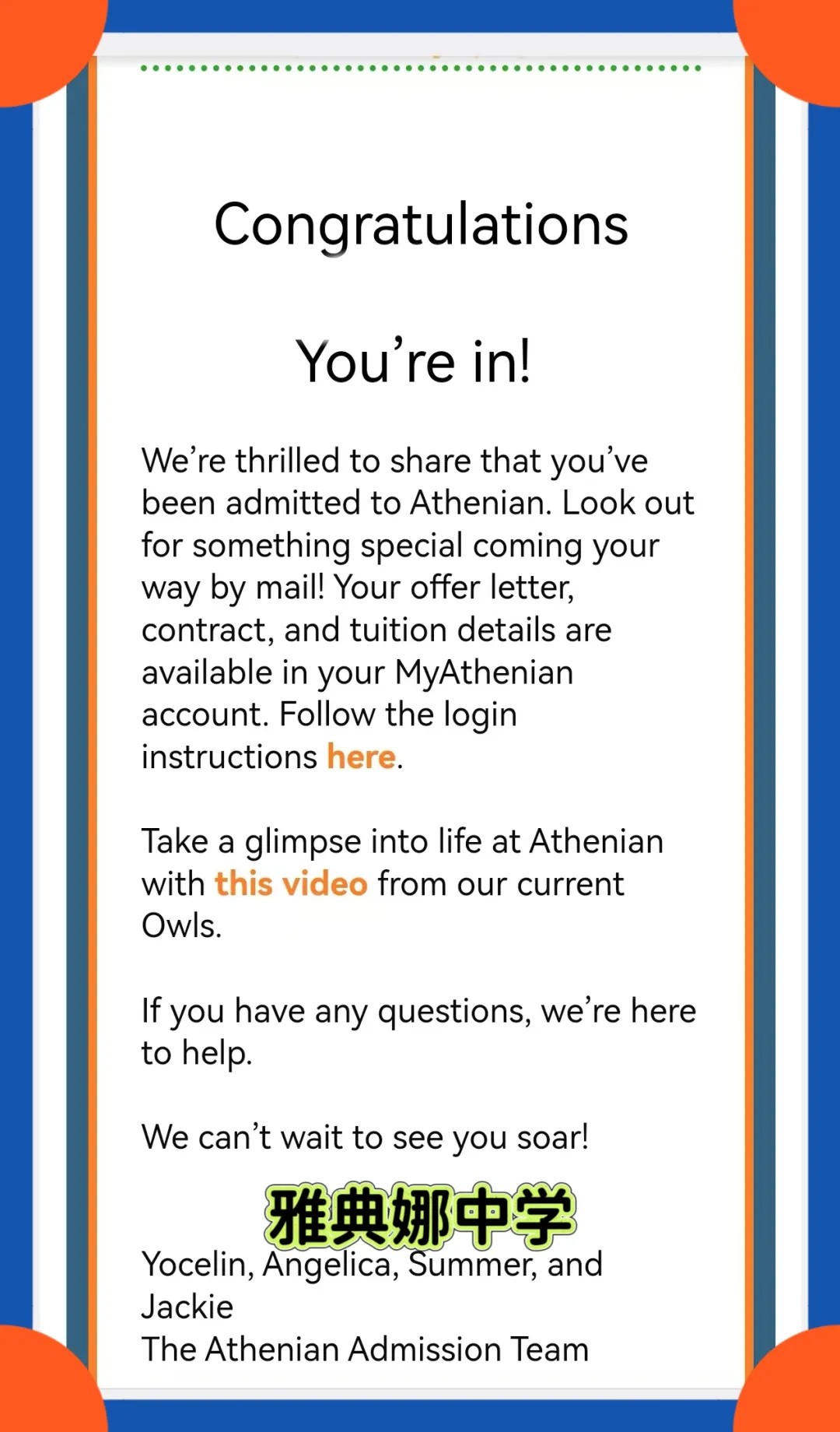 【錄取喜報】恭喜留美網(wǎng)學子z同學斬獲雅典娜中學 錄取offer