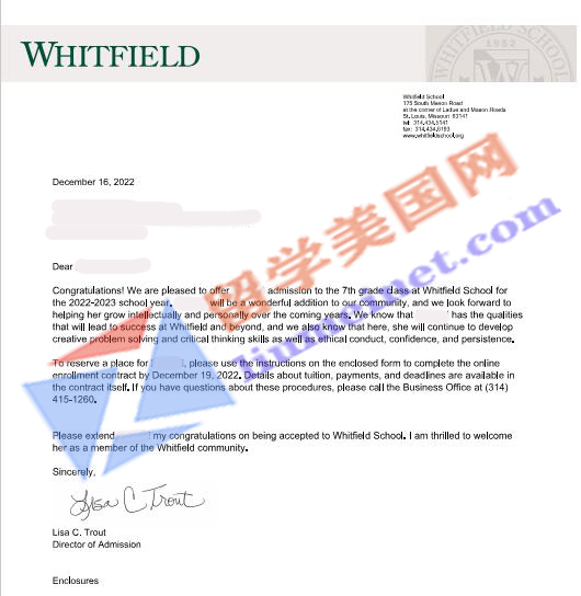 錄取學(xué)校:惠特菲爾德學(xué)校Whitfield School
