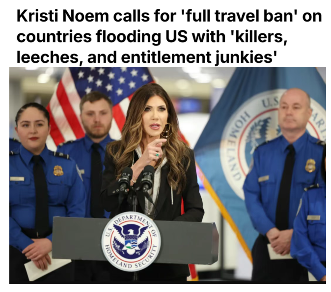12月1日,美國國土安全部部長克里斯蒂·諾姆通過社交媒體發(fā)布重磅聲明:將對所有“輸送危險(xiǎn)移民”的國家實(shí)施全面旅行禁令!諾姆在貼文中措辭激烈,直指“殺人犯、吸血蟲、占便宜的垃圾家伙”,引發(fā)全球關(guān)注。