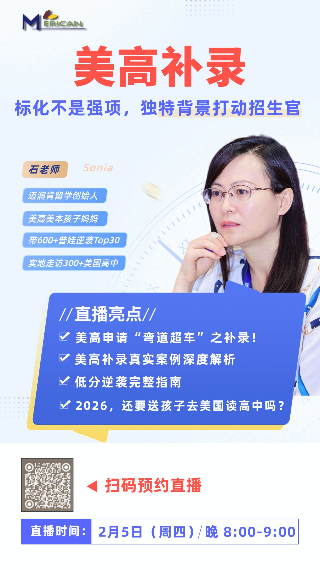 直播預(yù)告|美高申請(qǐng)“彎道超車”指南:當(dāng)標(biāo)化不是強(qiáng)項(xiàng),如何用獨(dú)特背景打動(dòng)招生官?