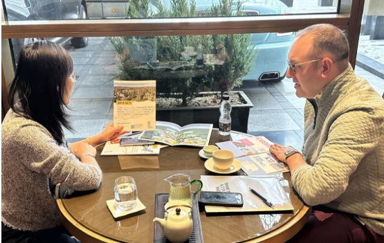 石老師與招生官溝通學(xué)校特色項(xiàng)目