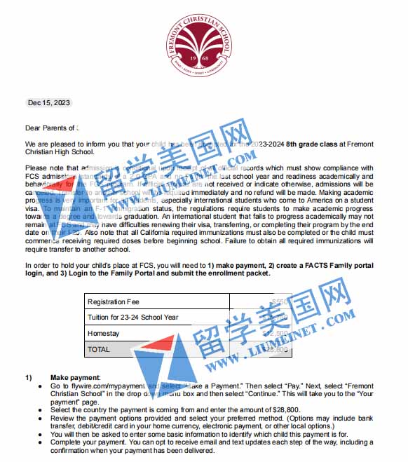 【錄取喜報(bào)】恭喜留美網(wǎng)Y同學(xué)斬獲Fremont Christian School錄取offer!