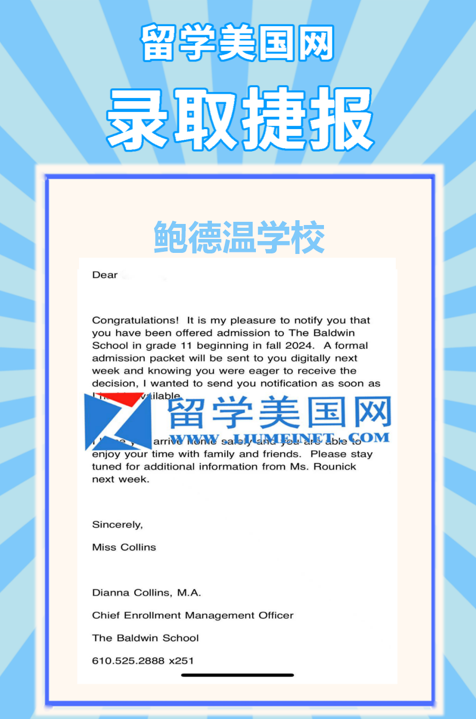 一、恭喜G同學(xué)斬獲賓州頂尖走讀女校鮑德溫中學(xué)The Baldwin School錄取。
