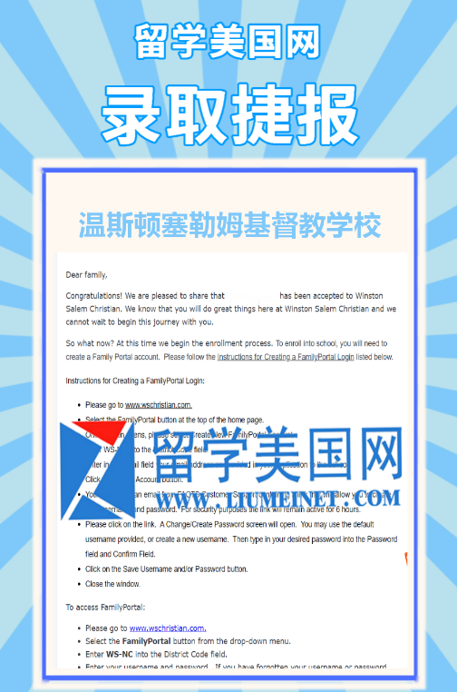 四、恭喜J同學(xué)獲得溫徹頓塞勒姆基督教學(xué)校 Winston Salem Christian School錄??!