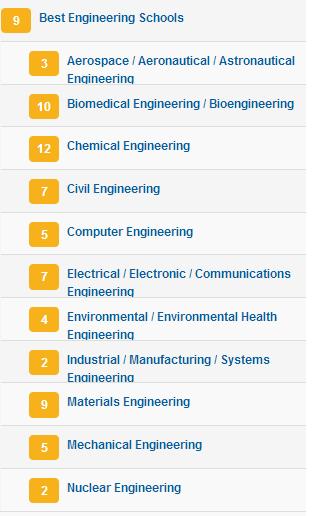 本科最佳工學(xué)院:7,下面是具體分支的排名: