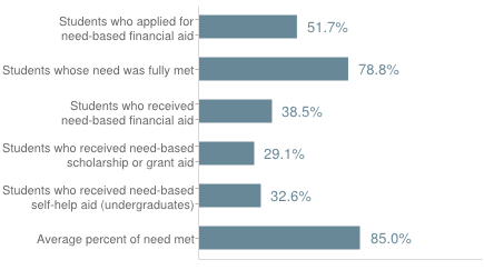 2013-14研究生學(xué)費:商學(xué)院$55,000,法學(xué)院$48,250,工學(xué)院$$41,914,教育學(xué)院:$39,666