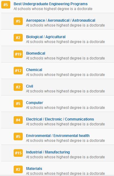 本科最佳工學(xué)院:5,下面是具體分支的排名:
