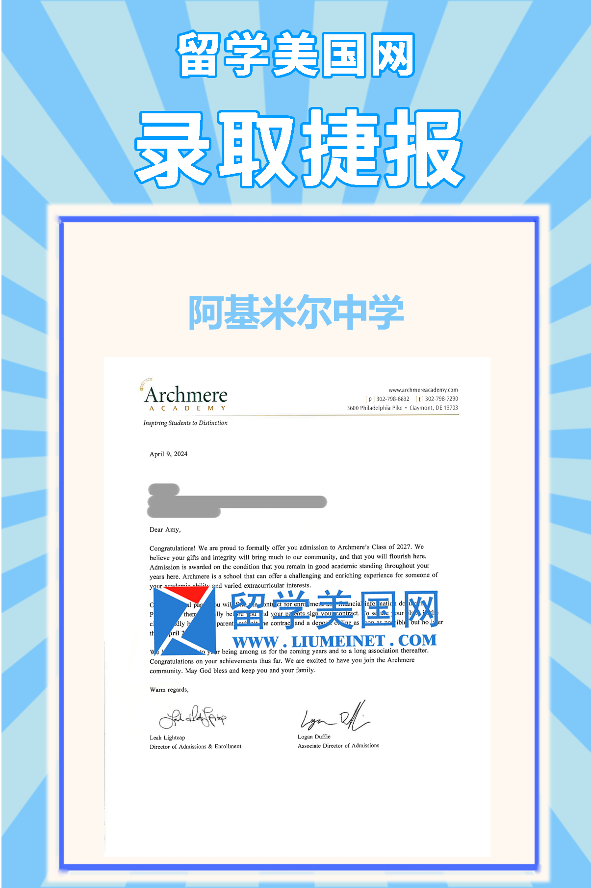 剛剛,邁潤肯又收獲一枚補(bǔ)錄offer—特拉華州頂尖走讀學(xué)校-阿基米爾學(xué)校Archmere Academy。L同學(xué)在標(biāo)化成績不高的情況下,成功申請到美國總統(tǒng)拜登母校。