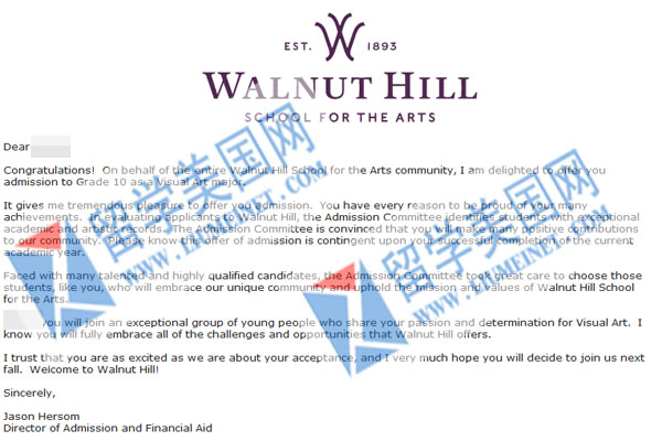 好消息!好消息!恭喜留美網(wǎng)同學(xué)成功補(bǔ)錄到 Walnut Hill School 頂尖藝術(shù)高中!這所學(xué)校非常的棒,藝術(shù)成就非常高,是美國四所頂尖藝術(shù)高中之一!錄取難度很大,但是留美網(wǎng)接到這個(gè)case之后,加班加點(diǎn),通過面試培訓(xùn),最終幫學(xué)生爭(zhēng)取到了錄取offer!感謝留美網(wǎng)全體員工的辛苦努力和付出,在這里祝留美網(wǎng)同學(xué)前程似錦!勇攀高峰!咨詢熱線:400-000-7805,010-65183908,微信:liumeinet2014