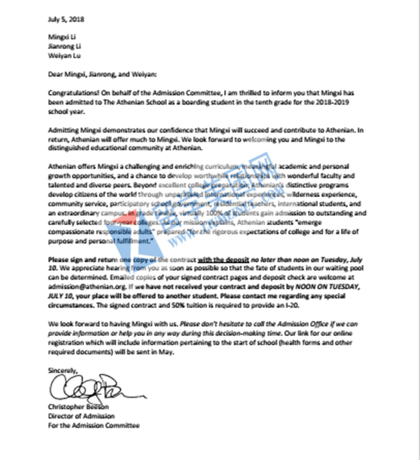 成功案例:恭喜L同學(xué)錄取The Athenian School offer