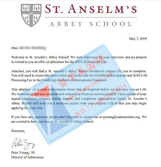 恭喜留學(xué)美國網(wǎng)Z同學(xué)收獲圣安塞姆男校錄取