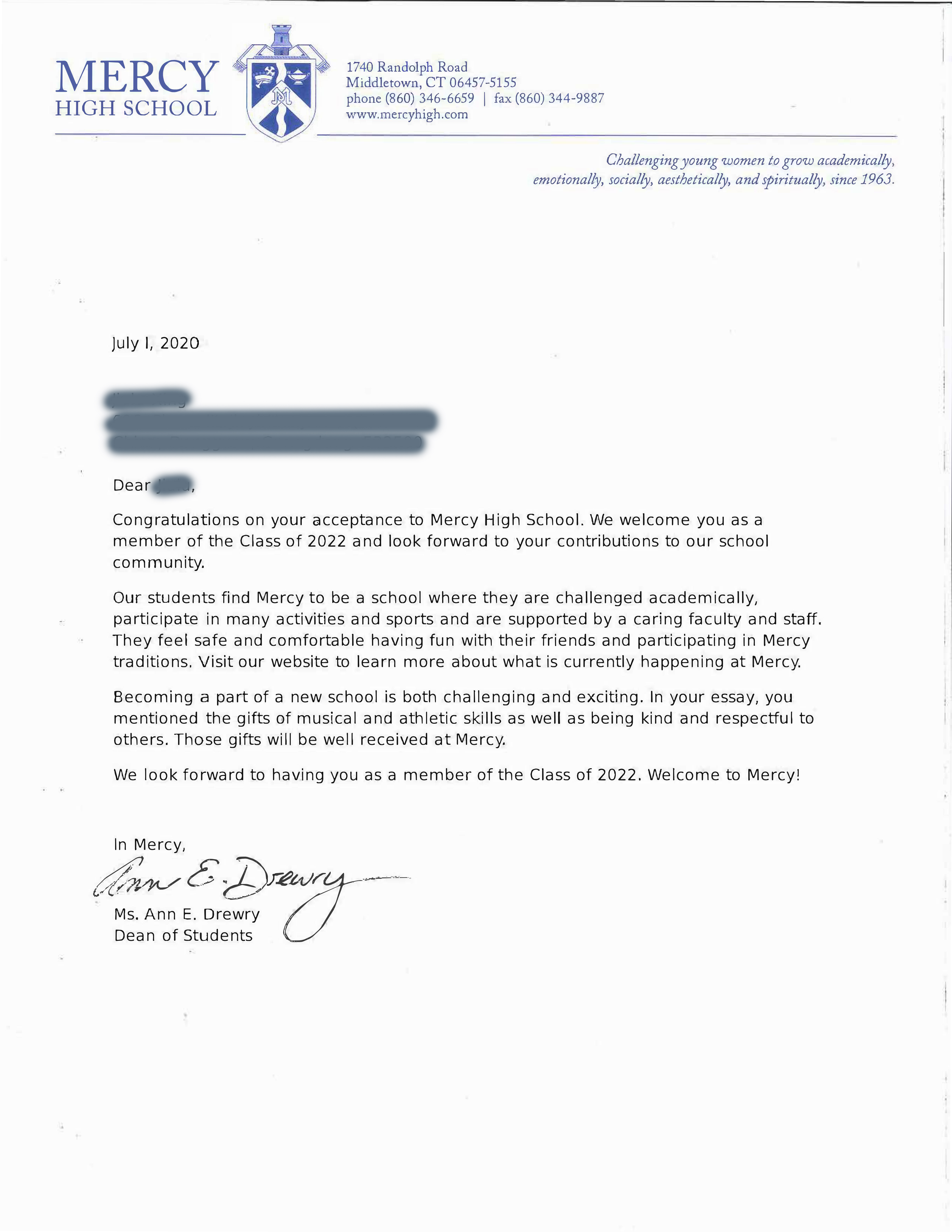 錄取院校: 梅西高中(Mercy High School)