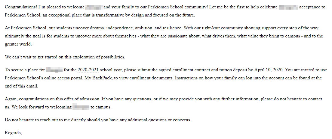- 恭喜留美網(wǎng)Y同學(xué)收獲福利斯特里奇中學(xué)錄取
