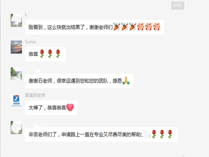 在這里非常感謝我們留美網(wǎng)中美團(tuán)隊(duì)多年來的辛苦付出和誠信服務(wù),為我們贏得了良好的口碑,為高效率的成功申請(qǐng)?zhí)峁┝藦?qiáng)大助力。