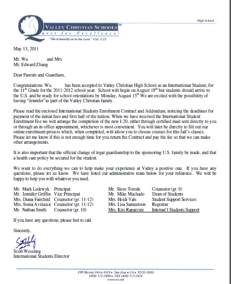 挑戰(zhàn)難度:吳同學在江蘇蘇州一所國際高中的學生,各方面條件都非常優(yōu)秀,不但學習成績優(yōu)異,而且擅長運動,還參加了市運動隊等活動。由于學生家長也是美國名牌大學畢業(yè)的,所以對孩子選校期望值很高,與留美網簽約之前,家長和學生自己申請了N所美國頂尖寄宿高中,但是一直至4月份也沒有任何錄取結果。在焦慮中,家長毅然決然地選擇了留美網。由于美國頂尖寄宿高中申請截止日期都比較早,針對于申請得如此晚的學生而言,我們的顧問很慎重地與在美國的境外團隊的老師取得了聯系。由于常年良好的合作關系,我們在美國的境外老師積極的與美國一些學校直接聯系溝通,最終確保了申請錄取率。最終孩子獲得加州藍帶高中山谷基督高中和前50的寄宿學校錄取,吳學生非常欣喜說,是留美網圓了她留學美國的夢想。最終孩子選擇了加州的山谷基督高中。