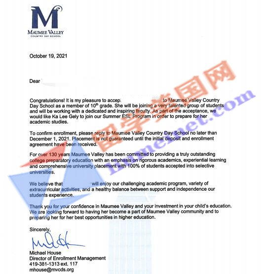 Maumee Valley Country Day School建校于1884年,位于俄亥俄州的托萊多市,氣候四季分明,平均氣溫與北京相似,相對較濕潤。Maumee Valley是俄亥俄州西北部最好的學校之一,是托萊多市最好的私立高中。校園75英畝,國際學生60人。