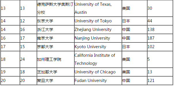 2017年USNEWS化學(xué)專業(yè)世界大學(xué)排名