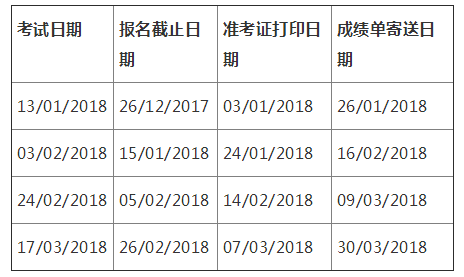 2018年1月至3月用于英國簽證及移民的雅思考試學(xué)術(shù)類機考報名截止日期、準(zhǔn)考證打印日期和成績單寄送日期