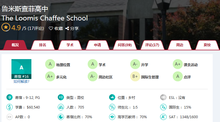 1、魯米斯查菲高中(The Loomis Chaffee School)