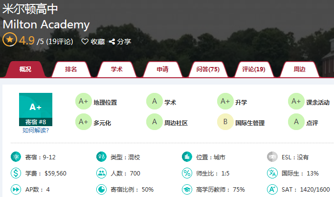 米爾頓高中建立于1798年,寄宿制和走讀制并存,該校認(rèn)為一個重要而有效的社會是建立在個人的自信和共同的尊重之上的。他們盡最大努力營造一種思想自由的氛圍,鼓勵主動性和開放性的思想交流。它以價值觀為基礎(chǔ),對多樣性深表尊重。米爾頓高中的教學(xué)和學(xué)習(xí)是一個積極的過程,得到了學(xué)校每個成員的智力、才能和潛能的認(rèn)可。