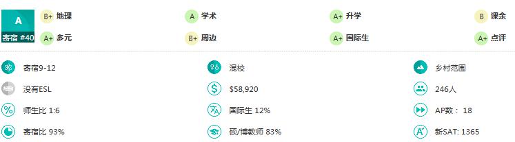 塔夫脫中學(xué)建立于1890年,學(xué)校坐落于美國的康涅狄格州的西部。校內(nèi)環(huán)境優(yōu)美,并且設(shè)施齊全:語言中心、藝術(shù)中心、設(shè)計(jì)實(shí)驗(yàn)室、學(xué)習(xí)中心、科教中心、計(jì)算機(jī)實(shí)驗(yàn)室、圖書館、舞蹈教室、音樂練習(xí)室、壘球場、高爾夫場、溜冰場、網(wǎng)球場、籃球場等。校園內(nèi)有清爽干燥且令人心曠神怡的空氣,每個人都有明確的目標(biāo),積極參加體育運(yùn)動。