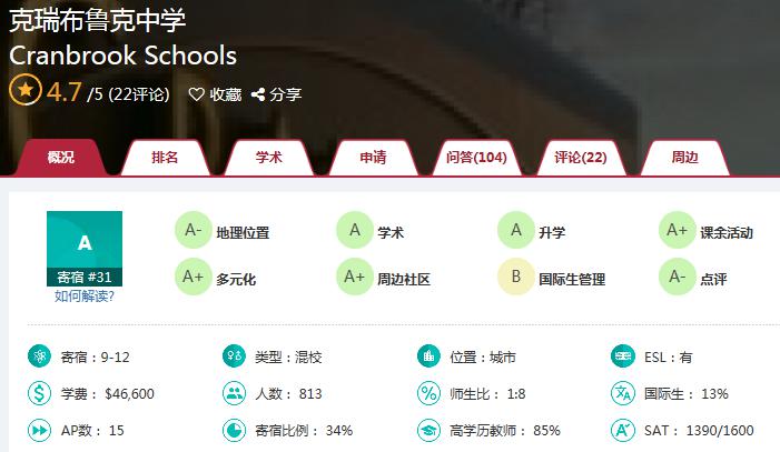 克蘭布魯克是創(chuàng)新的發(fā)源地之一,從事設(shè)計(jì)思維已近一個世紀(jì)。創(chuàng)新者為好奇的學(xué)生提供了成長、發(fā)現(xiàn)和創(chuàng)造的完美環(huán)境。該校占地319英畝,以其精致的校園建筑外觀聞名。最新的一棟建筑是備受好評的威廉姆斯游泳館,由其畢業(yè)生設(shè)計(jì)。學(xué)校附近的科技館和藝術(shù)博物館每年吸引250,000來訪者,是美國競爭最激烈的高中之一。