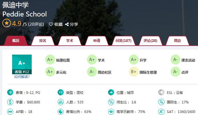 佩迪學(xué)校創(chuàng)立于1864年,位于新澤西州中部,校園占地230英畝,擁有55座建筑,校園景色迷人,環(huán)境優(yōu)美,美麗的校園,卓越的歷史和教育制度,被認(rèn)為是美國最好的寄宿中學(xué)之一。學(xué)校非常注重學(xué)生的個人思想成長,包括道德成長。通過各種課程與活動,塑造學(xué)生擁有個人魅力的人才。學(xué)?,F(xiàn)有來自23個州及23個國家的共530名學(xué)生,并且擁有89名教師,平均有19年教學(xué)經(jīng)驗(yàn),其中80%的人擁有本科以上學(xué)歷,師資力量雄厚。學(xué)校每年獲得的資助非常多,財(cái)力比較雄厚。該校的畢業(yè)生升學(xué)率為100%,其中許多美國頂級大學(xué)都有來自該校的畢業(yè)生,比如UPenn,Columbia,Cornell,Princeton等等。
