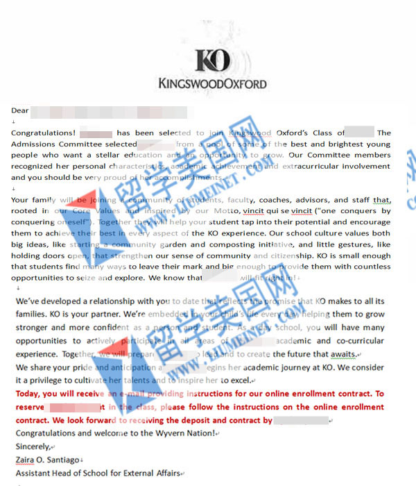 恭喜留學美國網(wǎng)W同學成功拿到了金斯伍德學校的offer,祝W同學在美國學習順利健康成長。