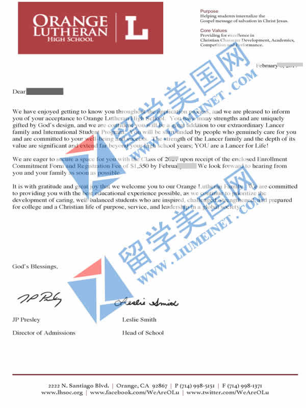 喜留學(xué)美國網(wǎng)Z同學(xué)獲得橘郡路德高中(Orange Lutheran High Schooloffer)錄取0ffer,祝愿他在未來的新的學(xué)校生活里快樂成長。